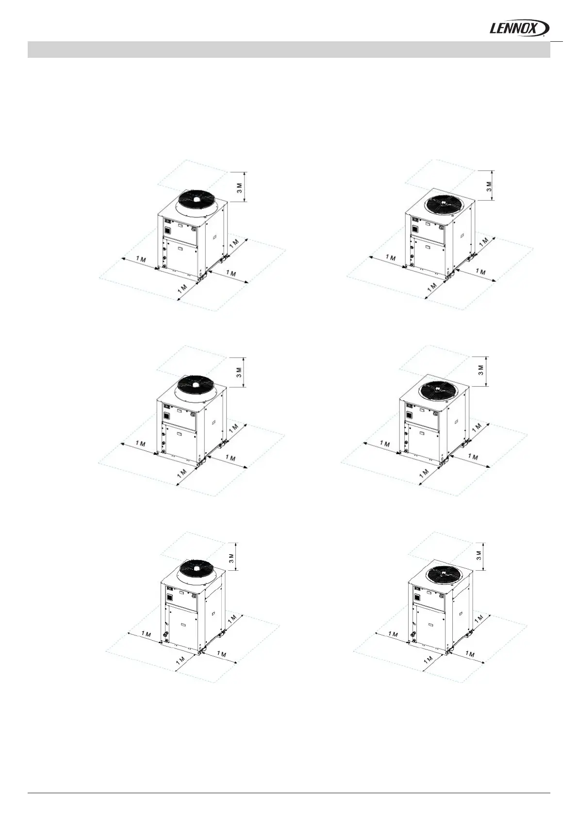 Clearance around the unit, for any unit version. Keep this space free around the unit for installation.