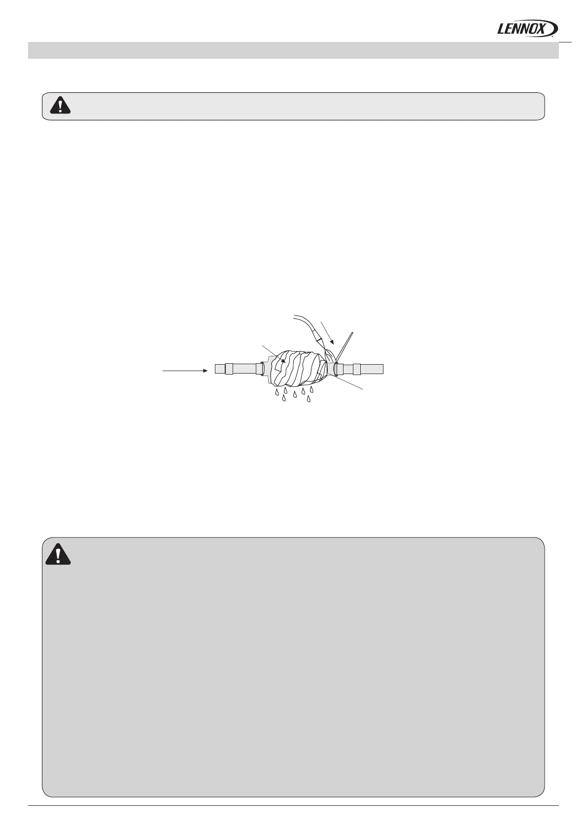 • The system must be ushed with inert gas (dry nitrogen). Compressed air or oxygen must not be used to purge refrigerant