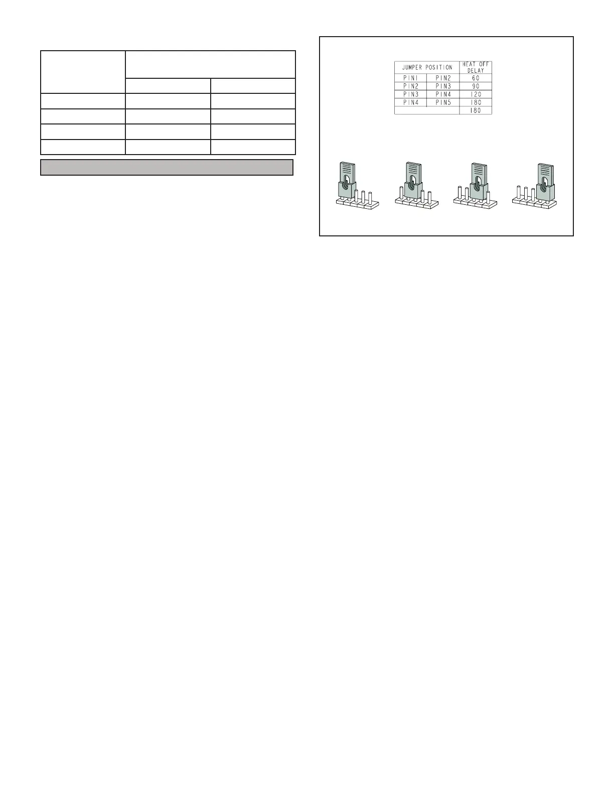 To adjust fan-off timing, reposition jumper across pins to