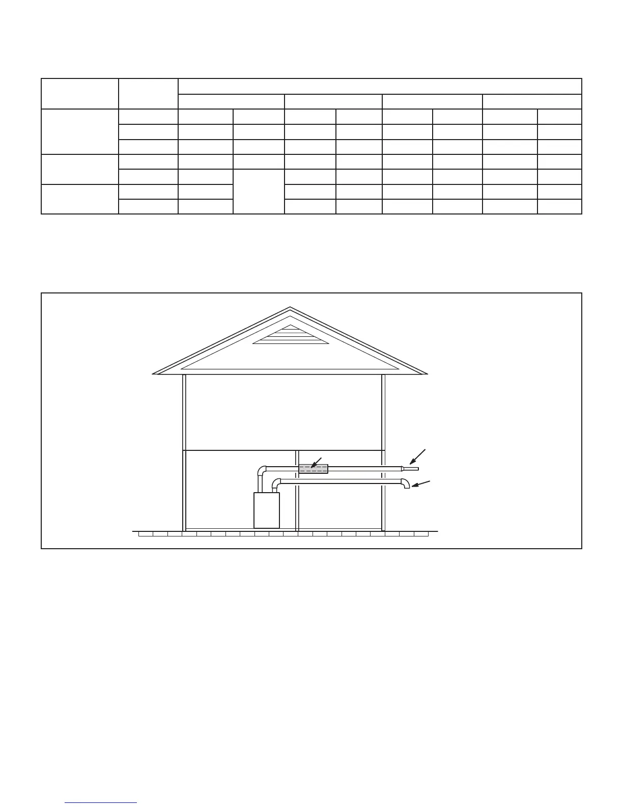 NOTE - Maximum uninsulated vent lengths listed may include the termination(vent pipe exterior to the structure) and cannot exceed 5 linear feet or