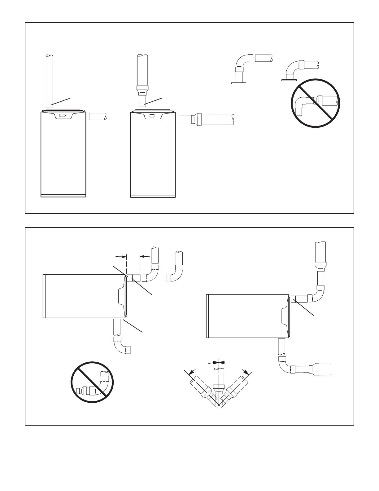 TYPICAL EXHAUST AND INTAKE PIPE CONNECTIONS IN HORIZONTAL DIRECT OR NON-DIRECT VENT