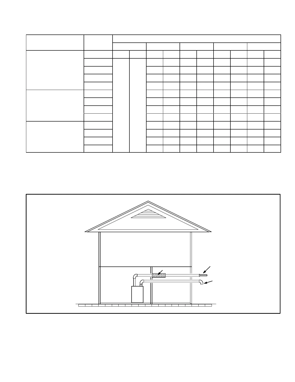NOTE - Maximum uninsulated vent lengths listed may include the termination(vent pipe exterior to the structure) and cannot exceed 5 linear feet or the