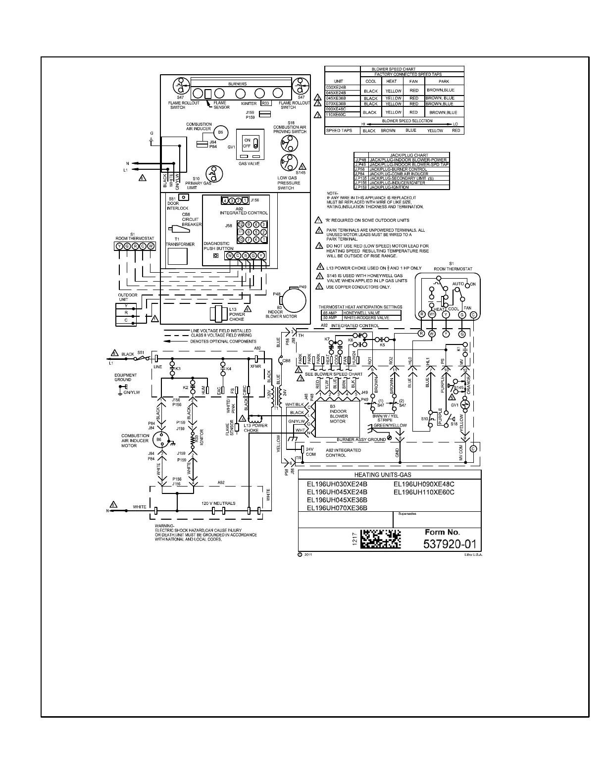 9 - After 30-second delay (from flame sensed), A92 integrated control applies 24VAC to Heat speed of B3 indoor blower.