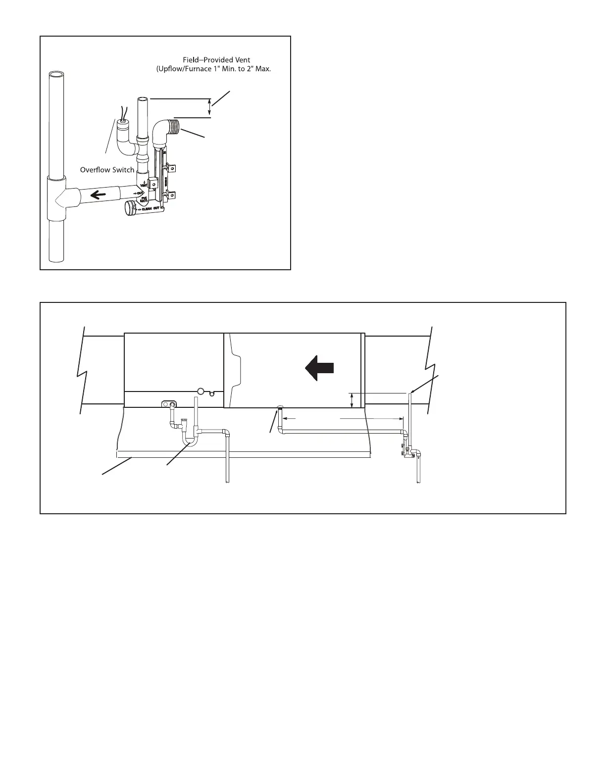 Piping from furnace and evaporator coil must slope down a minimum 1/4” per ft. toward trap