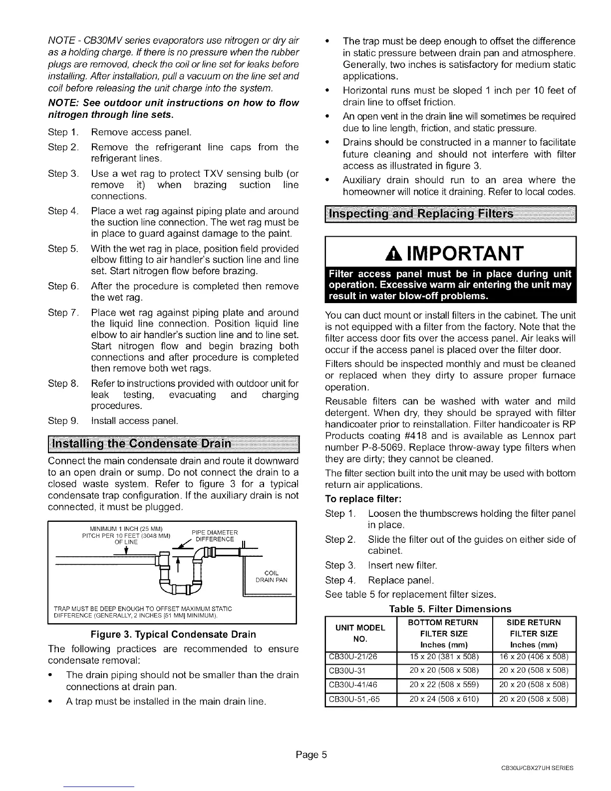 NOTE - CB3OMV series evaporators use nitrogen or dry air