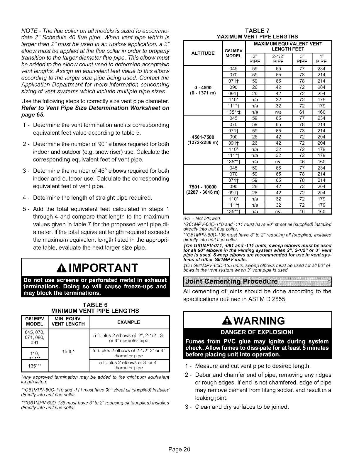 pipe is used. Sweep elbows are recommended for use in vent sys-