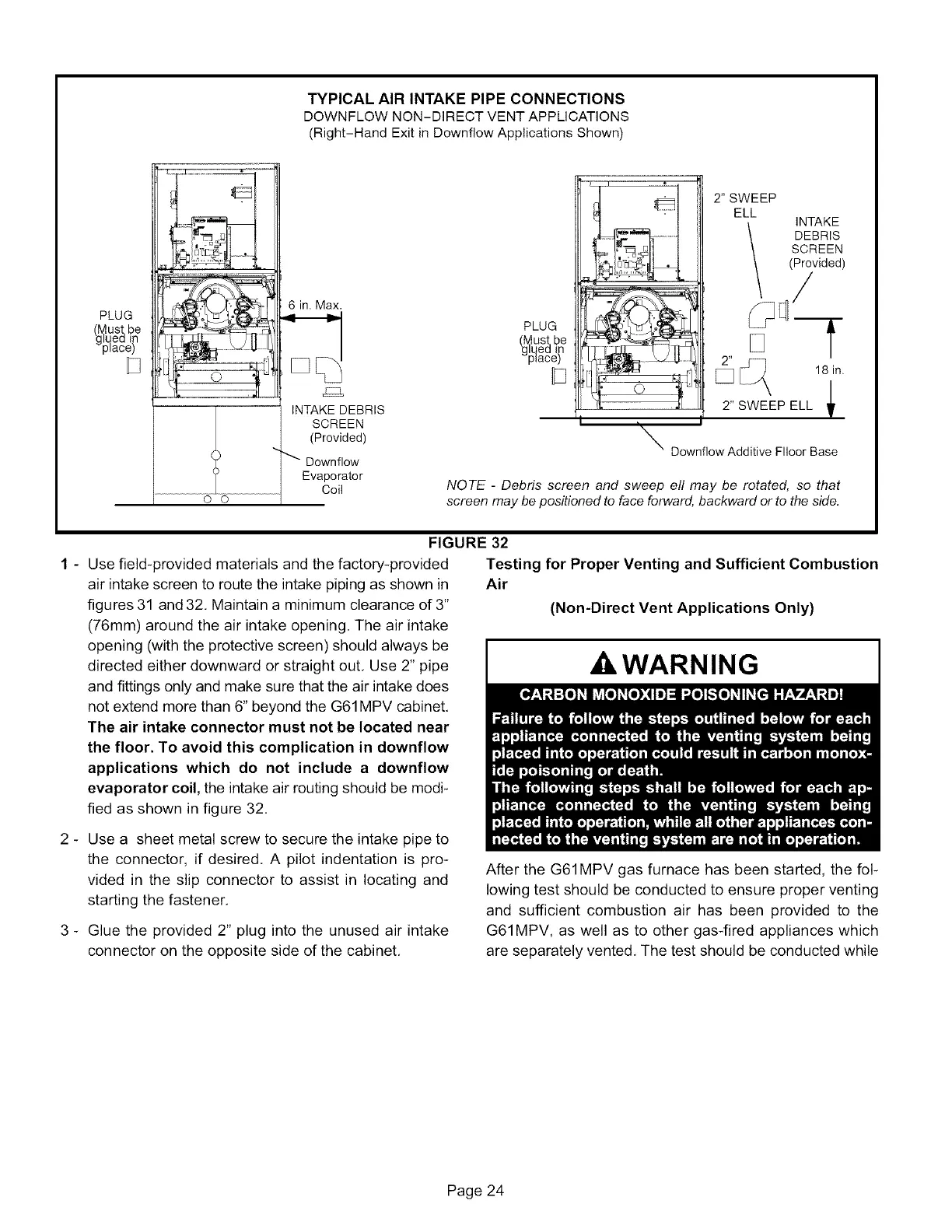 figures 31 and 32, Maintain a minimum clearance of 3"