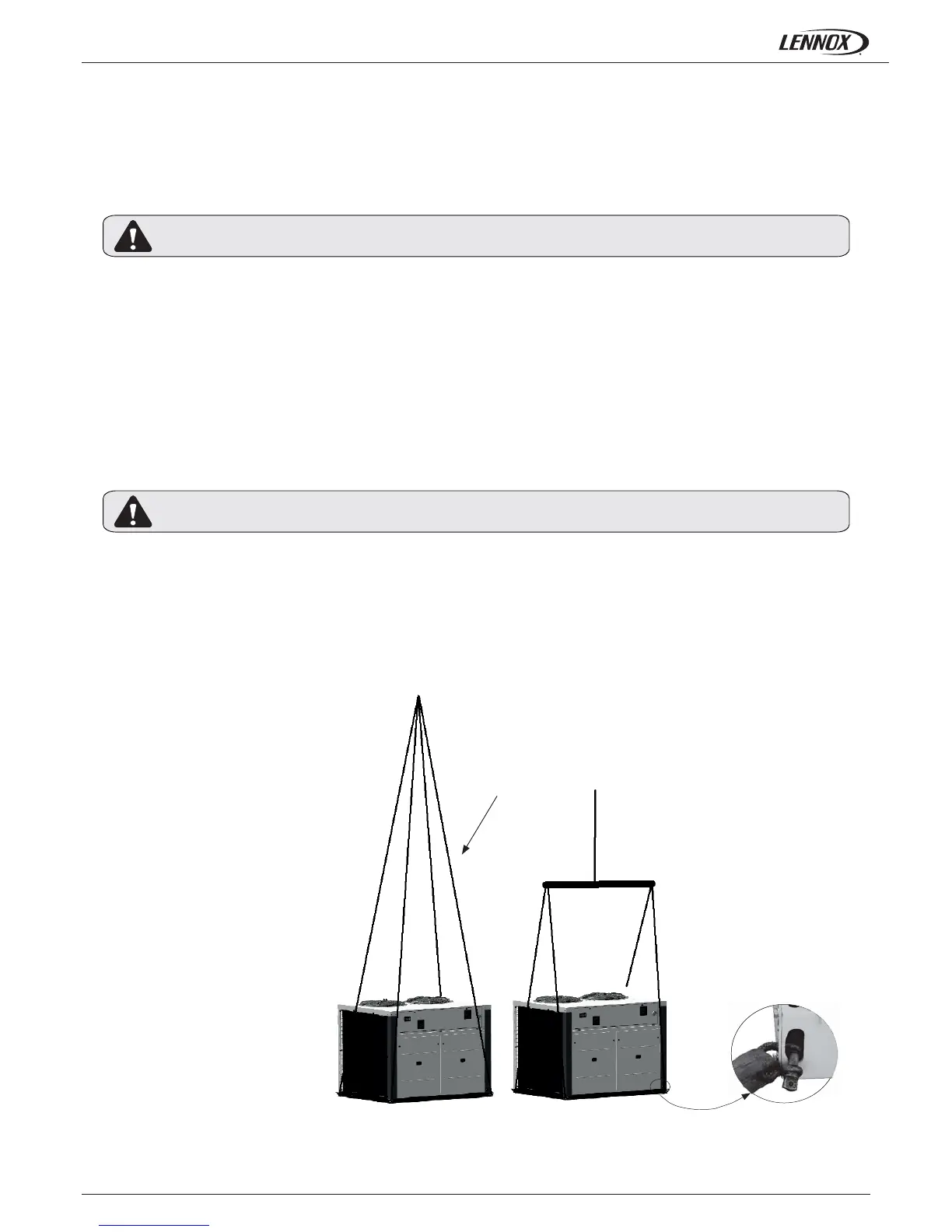 packaging. If there is damage, the unit may be rejected by notifying the LENNOX Distribution Deparent and reporting why the machine