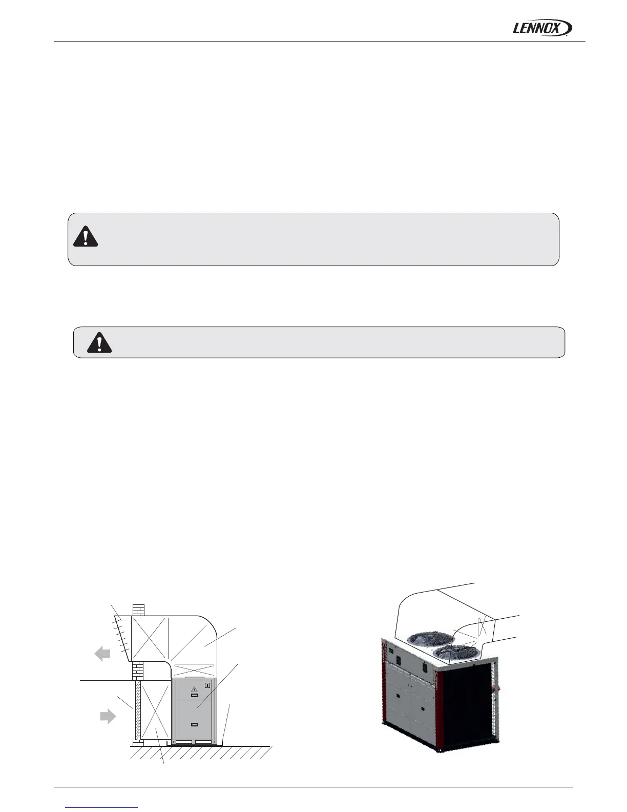2. See the minimum clearance diagrams for access - air supply to the batteries in the heating section of the unit (see page 25).