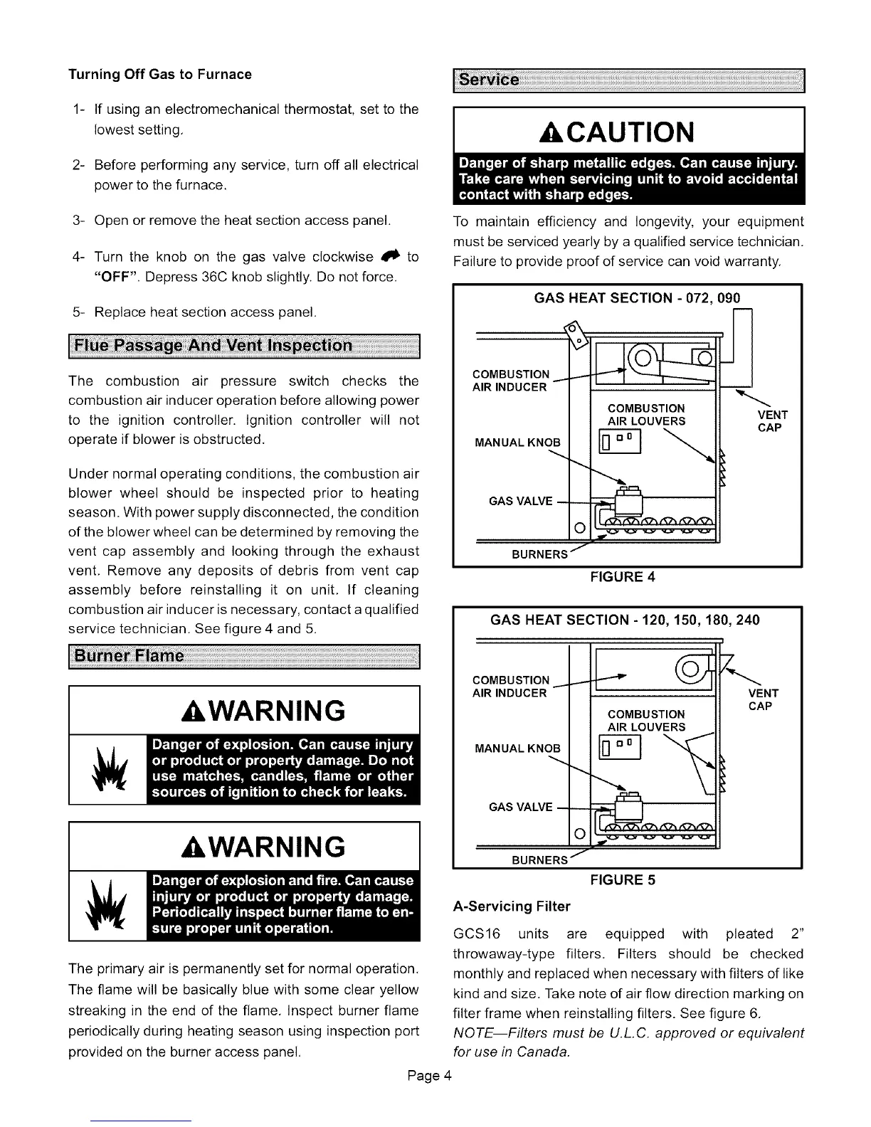 GAS HEAT SECTION - 120, 150, 180, 240