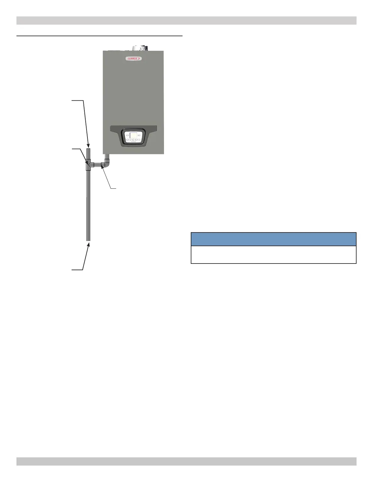 • Connect condensate piping to 3/4" PVC for 205 or 1/2"