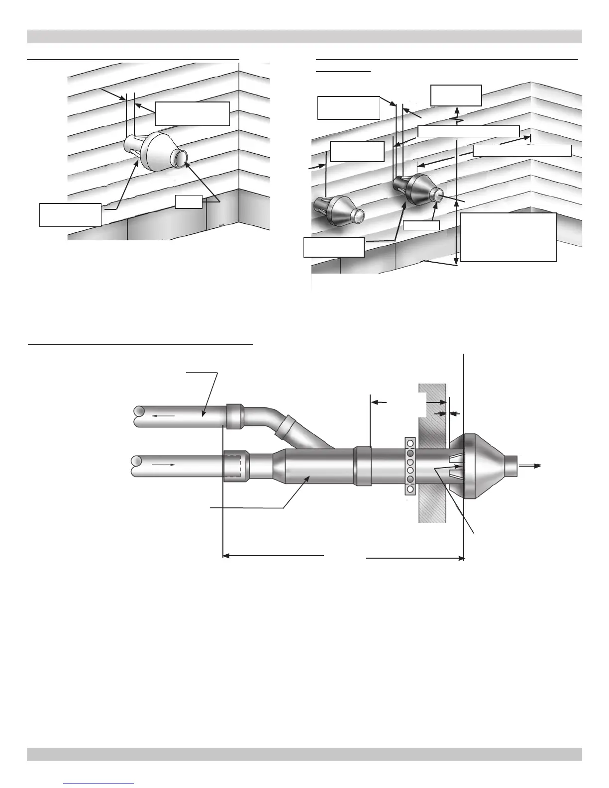 both combustion air and vent pipes. 12" (305mm) is minimum