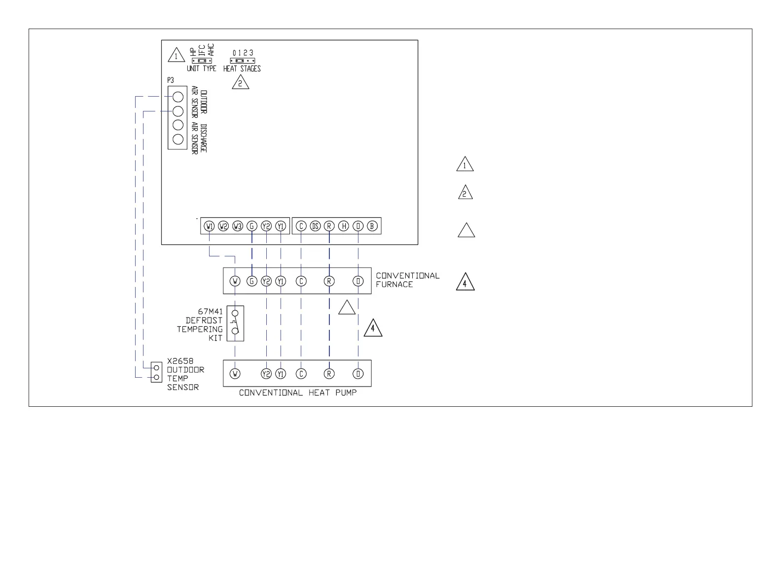 Figure 9. Conventional Furnace with Conventional Heat Pump (Defrost Tempering Kit Installed)