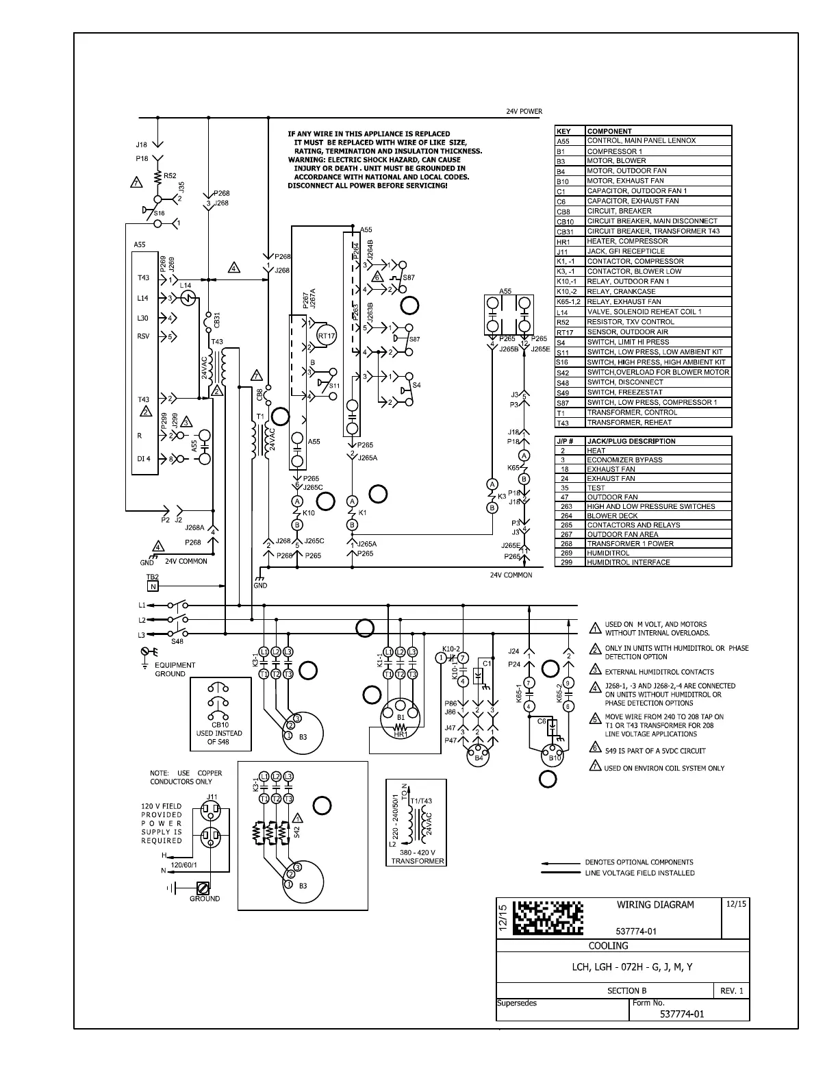 Lennox LCH048H4E - Wiring Diagrams - Belt Drive Units (Continued); LCH072 Belt Drive Unit Diagram (G, J, M, Y)
