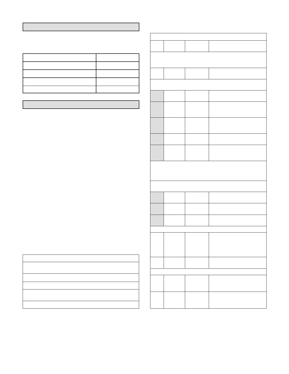 are shown in each table. Refer to the Unit Controller