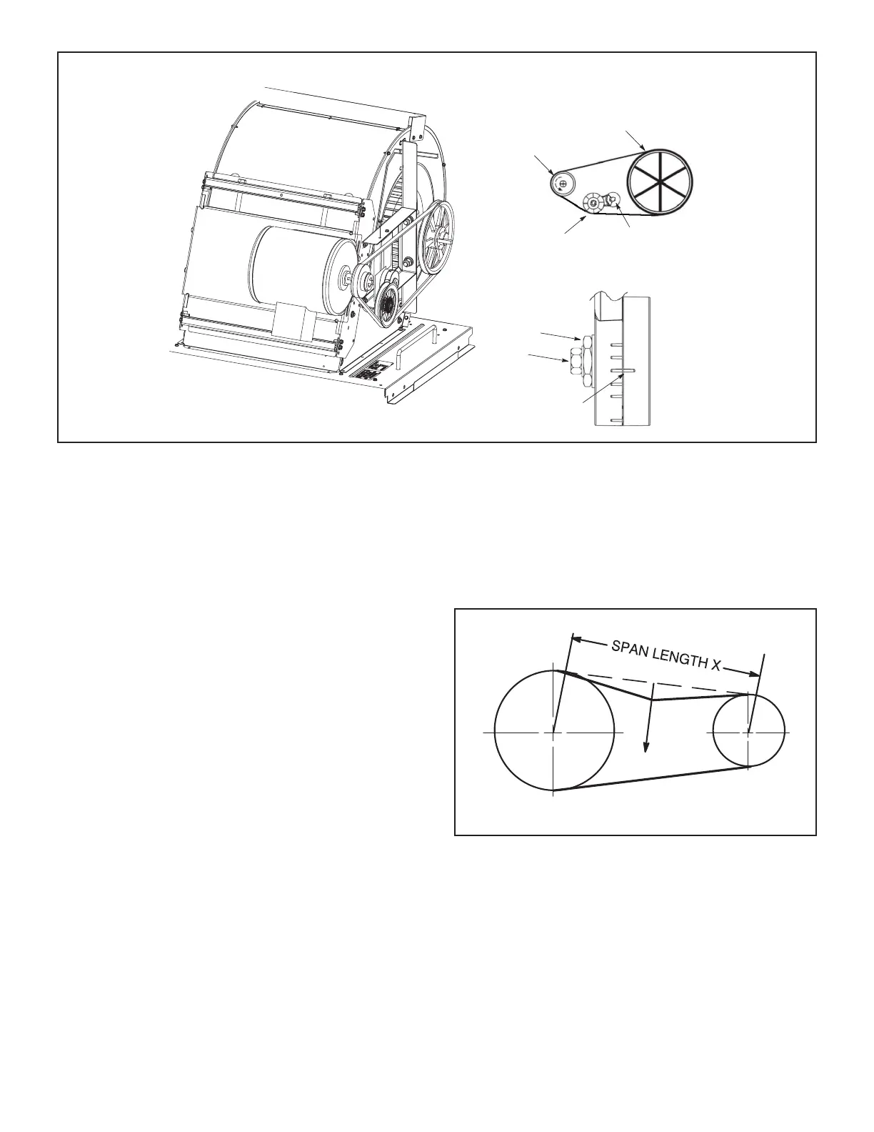 Overtensioning belts shortens belt and bearing life. Check