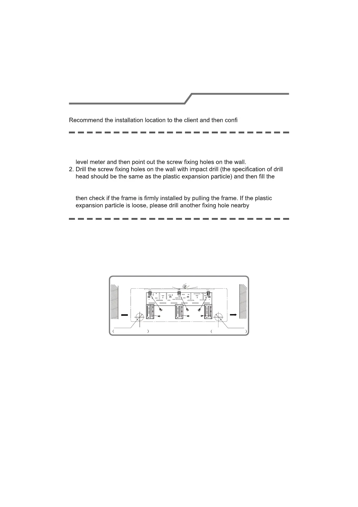 1. Hang the wall-mounting frame on the wall; adjust it in horizontal position with the
