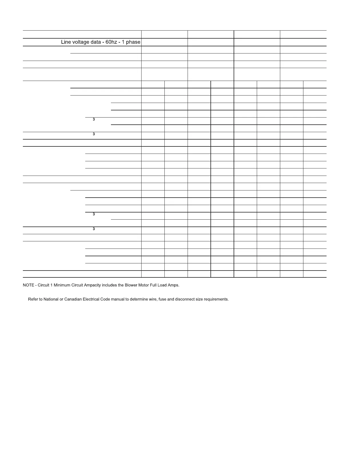 Unit only, no electric heat 25 25 40 40 50 50 60 60