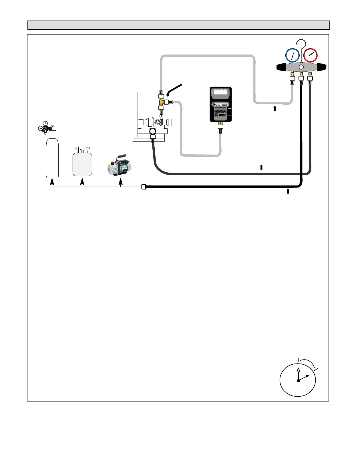D Shut off the dry nitrogen cylinder and remove the manifold gauge hose from the cylinder. Open the manifold gauge valves to release the