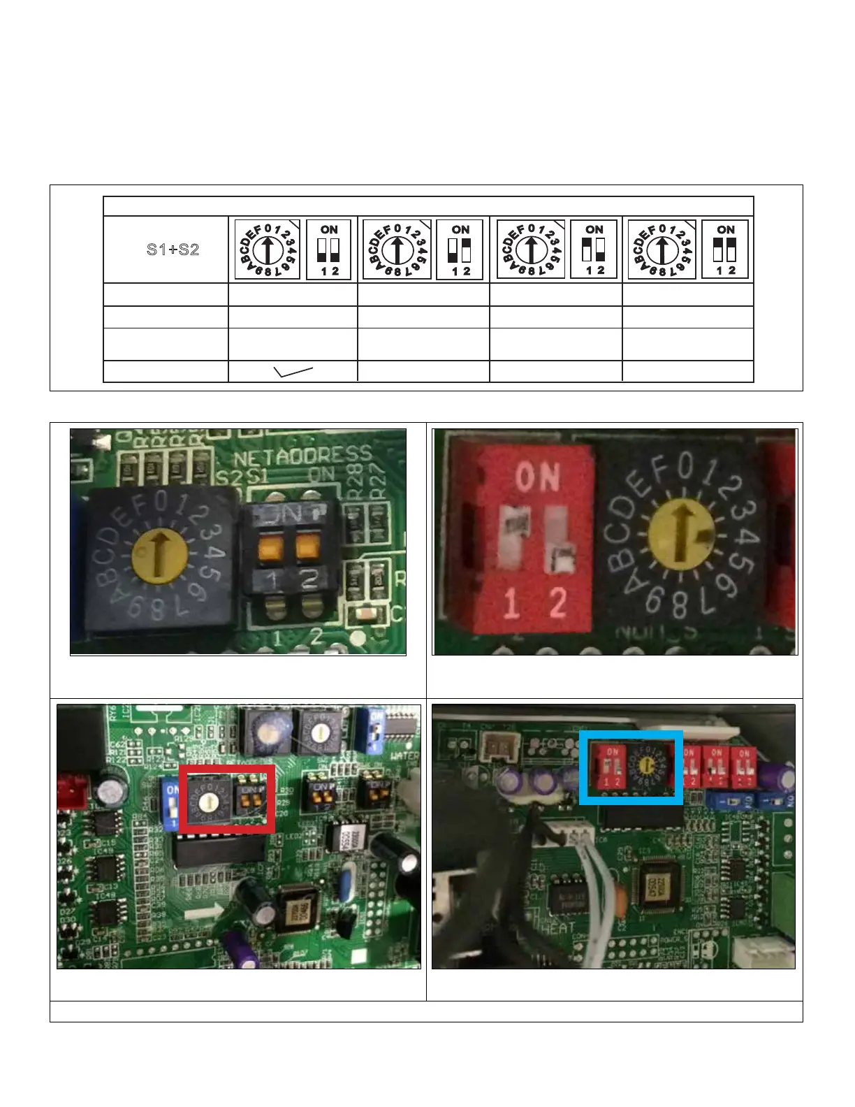 Allindoorunitsconnectedtoacentralizedcontrollermusthaveauniqueaddress.UsetheS1dipswitchandtheS2dial
