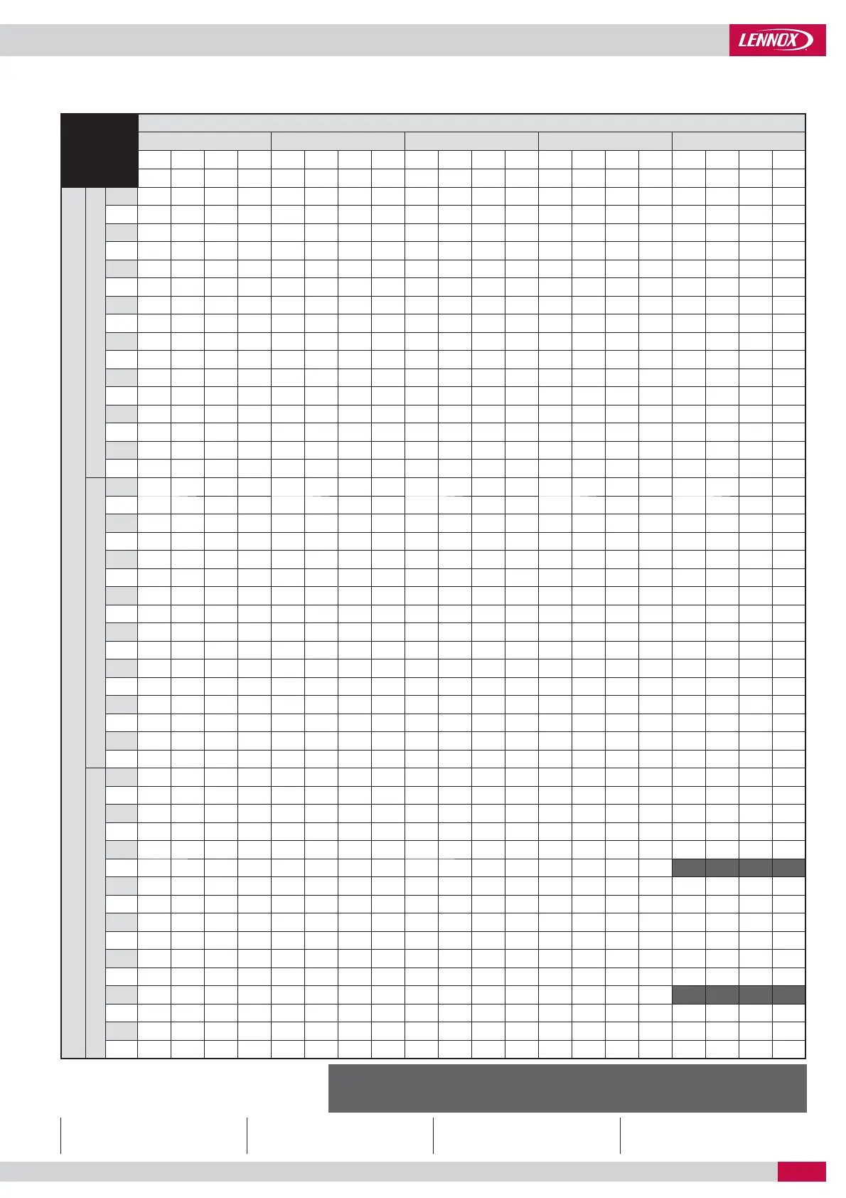 Values in grey cells : derating capacity, compressor(s) unload due to high discharge temperature