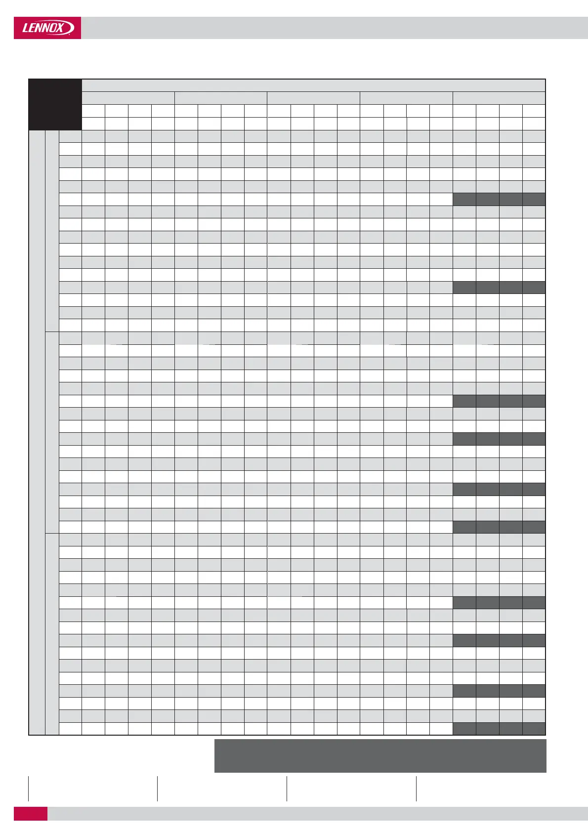 Values in grey cells : derating capacity, compressor(s) unload due to high discharge temperature