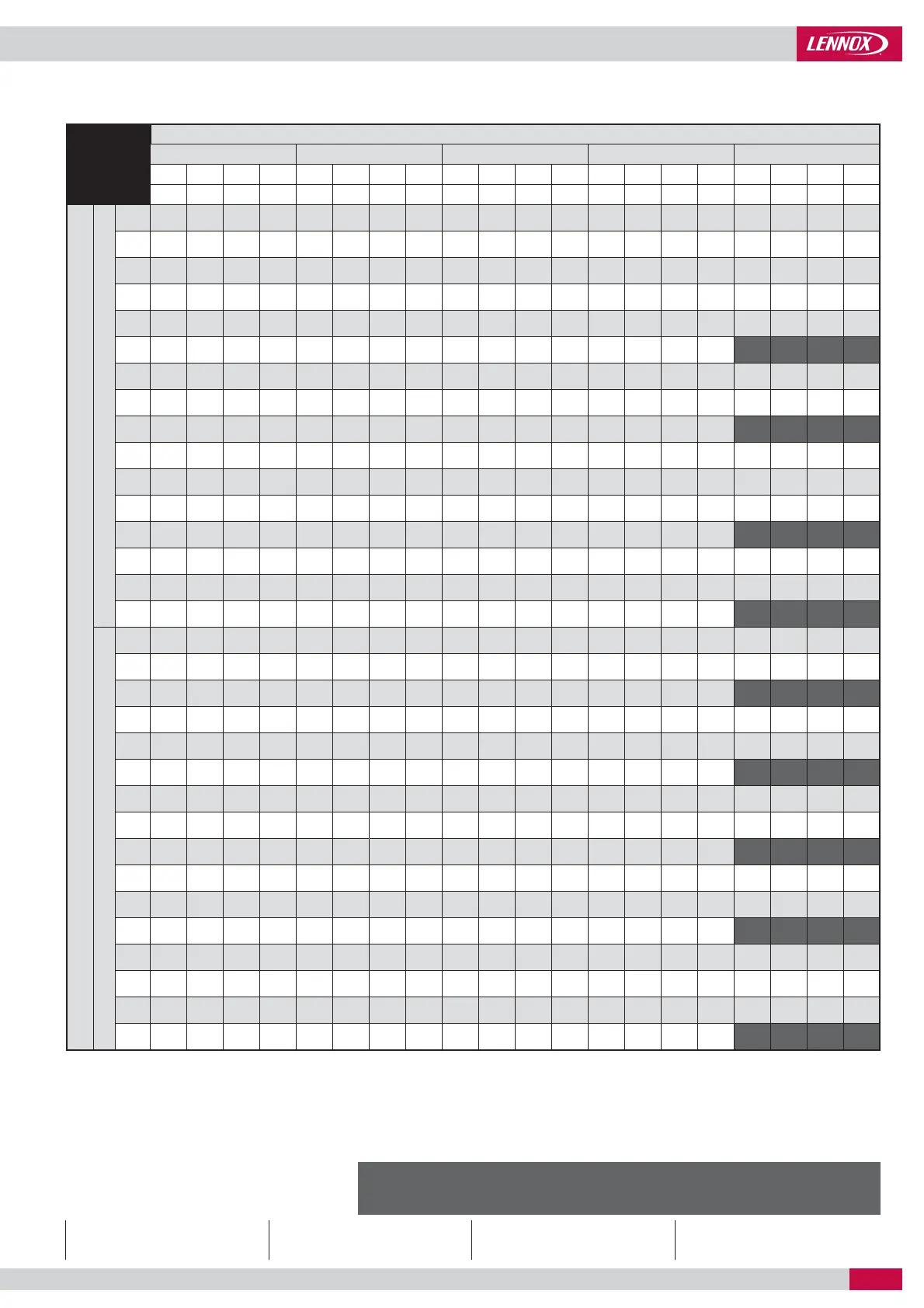 Values in grey cells : derating capacity, compressor(s) unload due to high discharge temperature