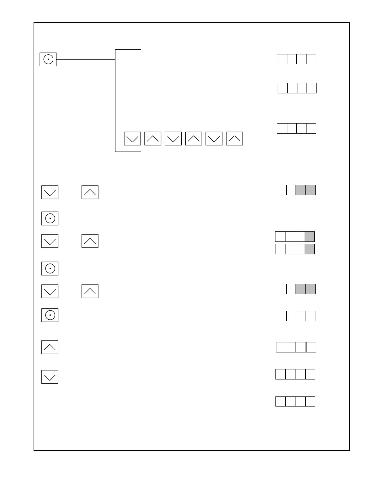 Note: Shaded boxes show which number in the controller display changes when the up or down arrow