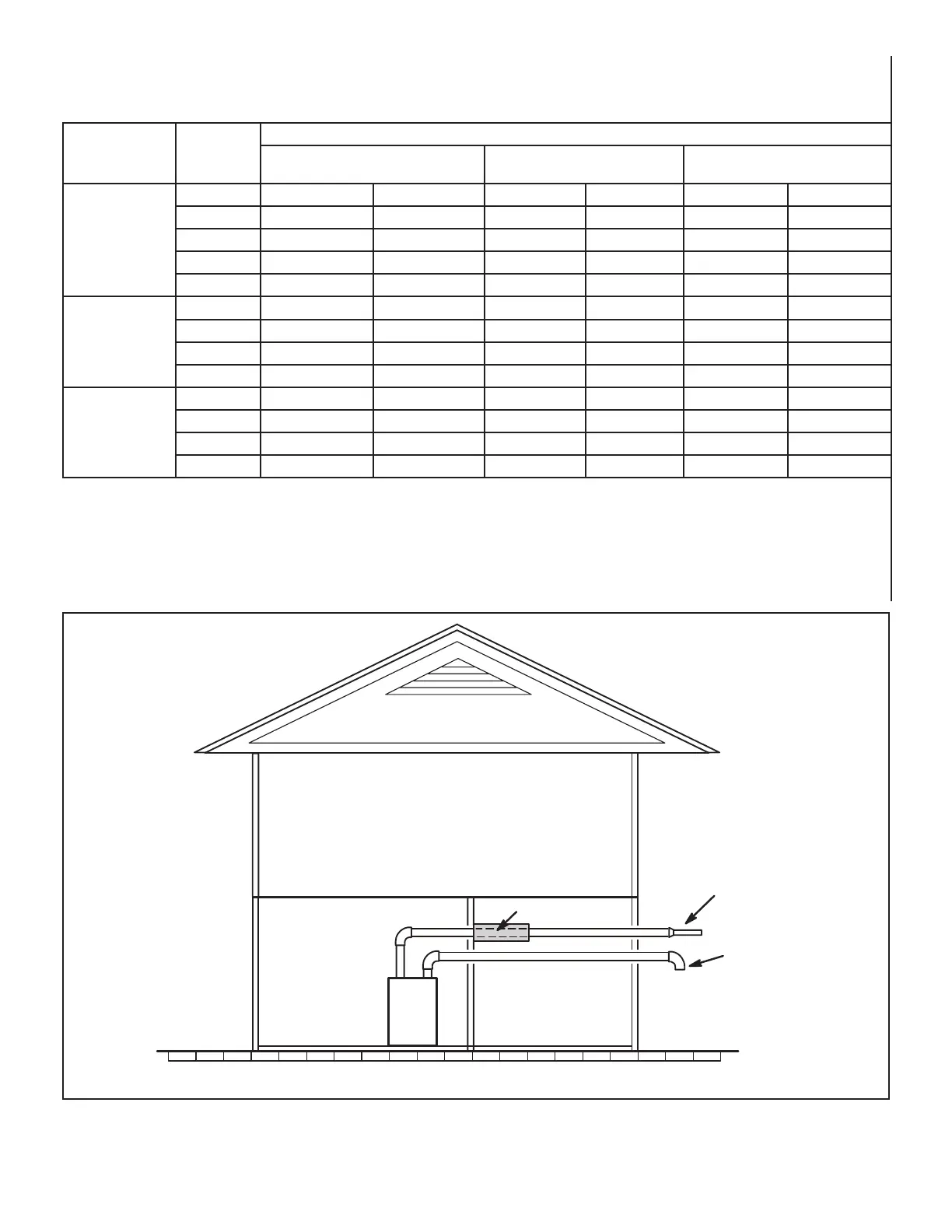 NOTE - Maximum uninsulated vent lengths listed may include the termination(vent pipe exterior to the structure) and cannot exceed 5 linear feet or the
