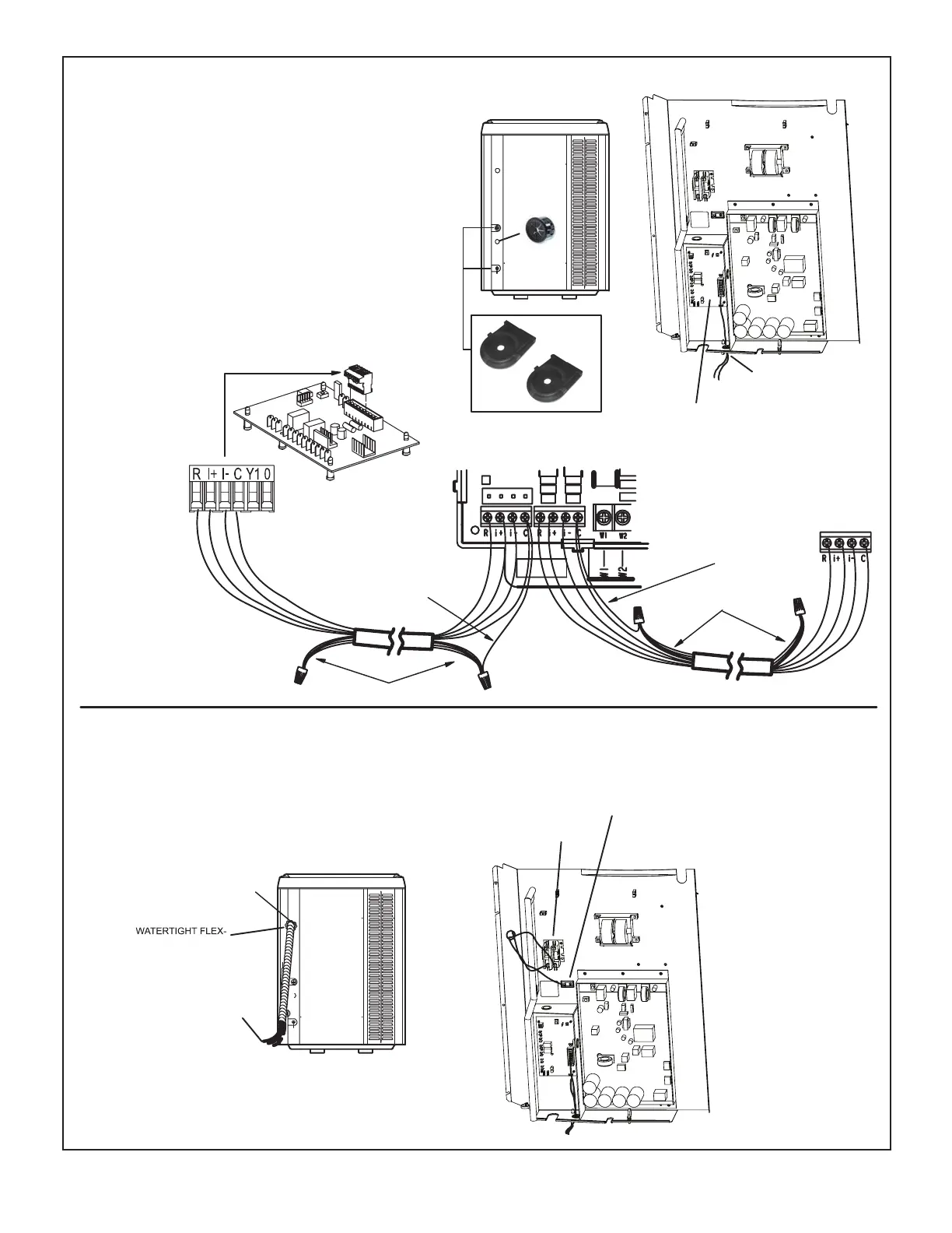 Any excess high voltage field wiring should be trimmed and secured away from any low voltage field wiring. To facilitate a conduit, a