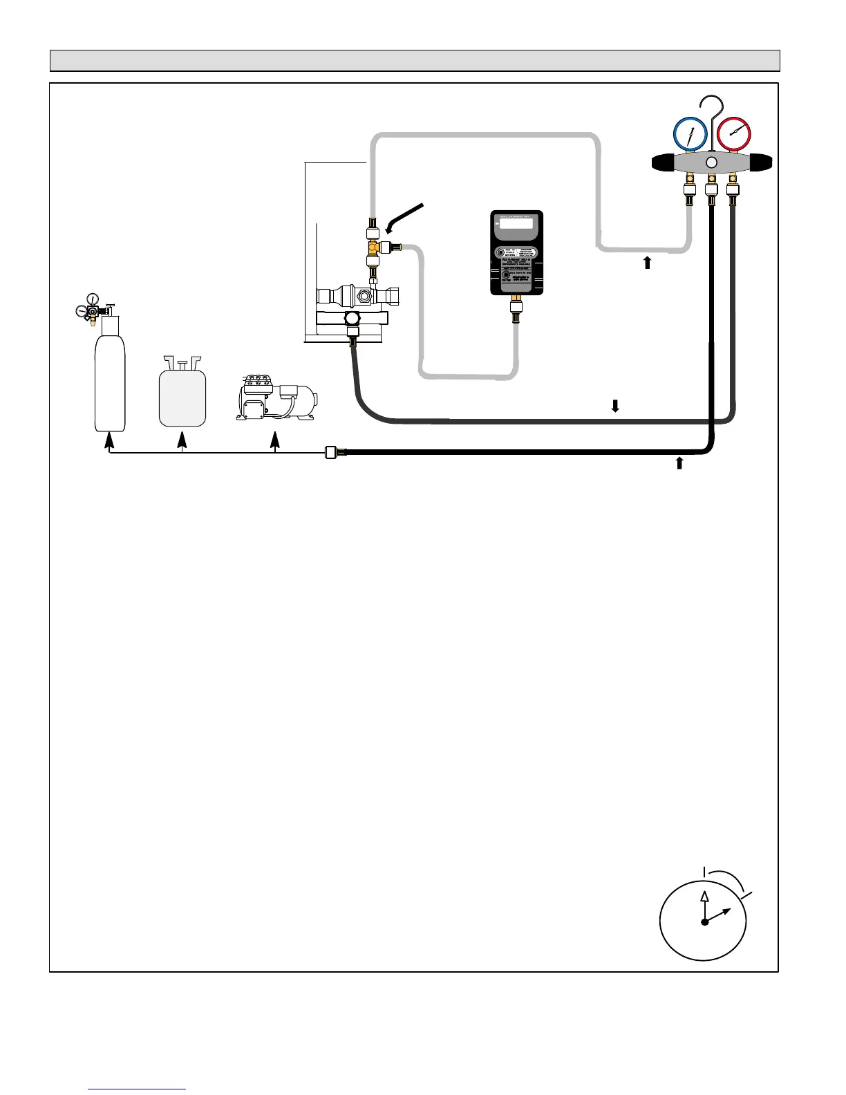 D Shut off the dry nitrogen cylinder and remove the manifold gauge hose from the cylinder. Open the manifold gauge valves to release the