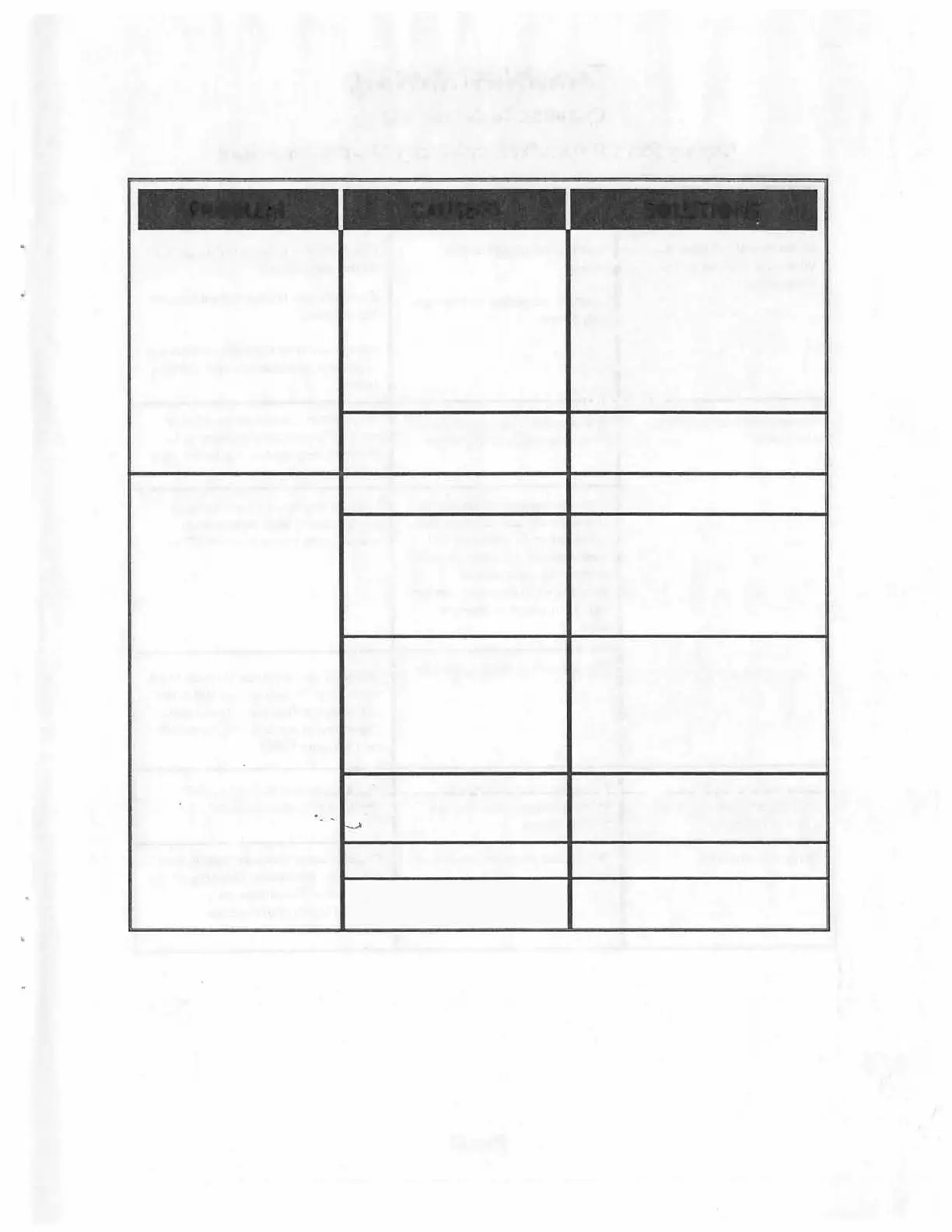 CAUSE(S) SOLUTIONS