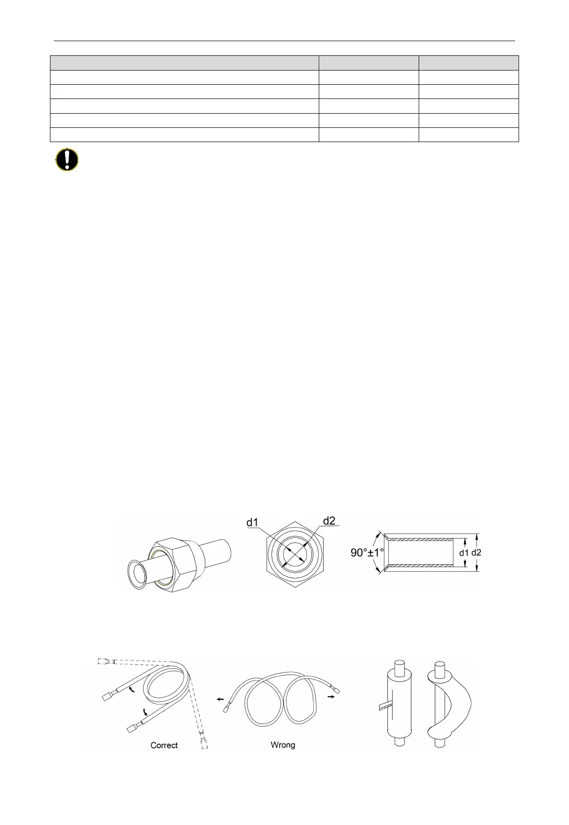 (3) Radius of bending parts should be over 200mm. Note that pipes cannot be repeatedly bent