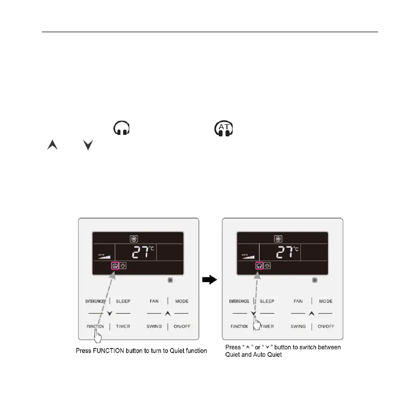 Turn on Quiet Function: press FUNCTION button to turn to Quiet function and