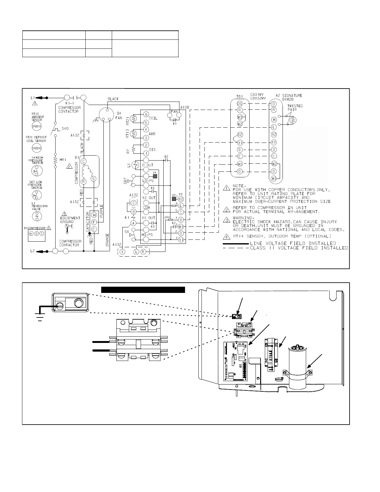 NOTE − For use with copper conductors only. Refer to unit rating plate for minimum circuit ampacity and maximum over-current protection size.