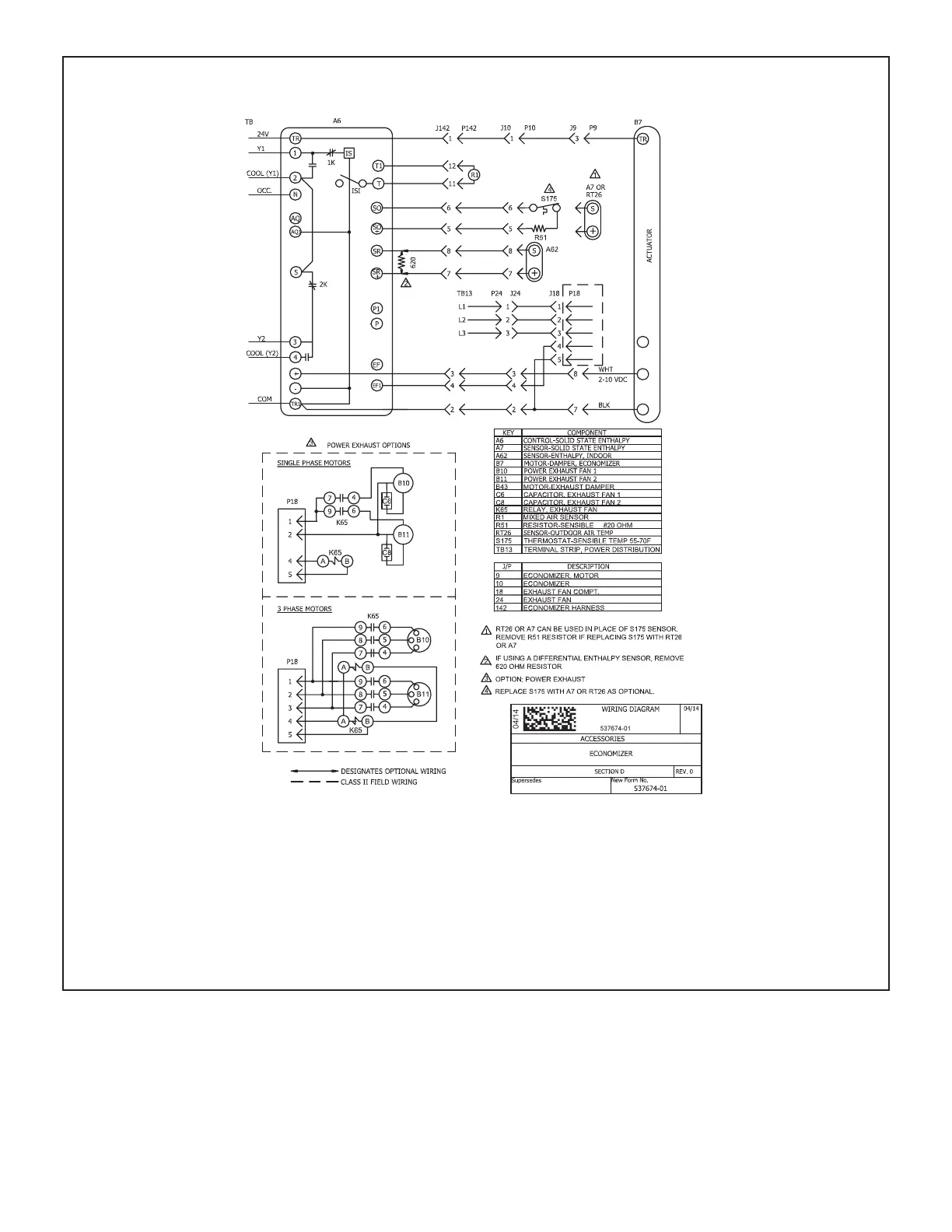 Lennox ZCC092 - Standard Efficiency Economizer; Economizer Wiring Diagram and Key; Economizer Power and Sequence of Operation