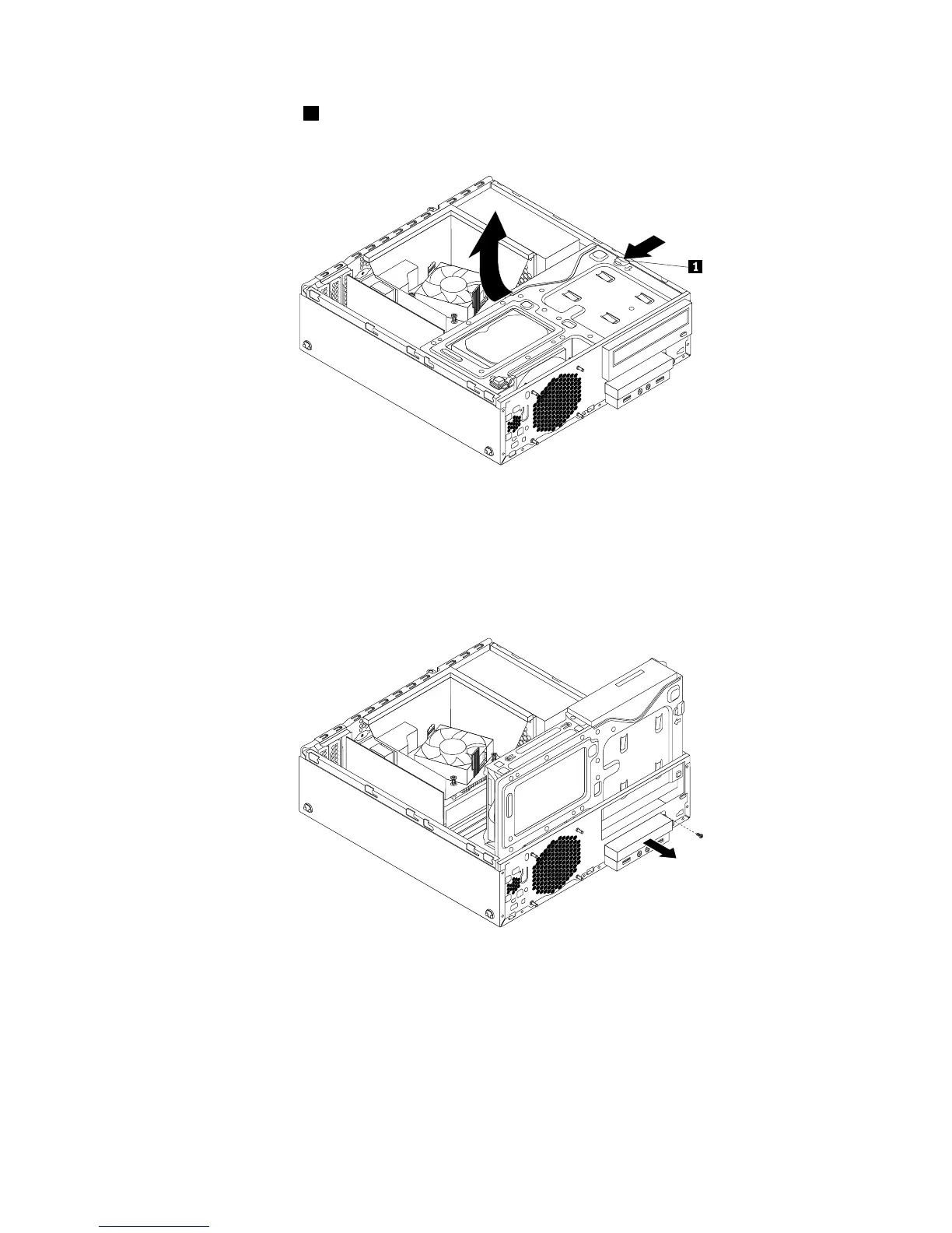 4.Presstheretainingclip1inthedirectionasshownandpivotthedrivebayassemblyupwardatthe