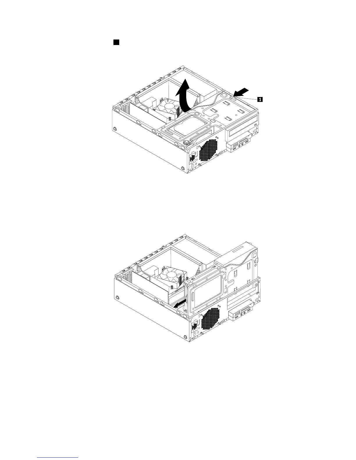 4.Presstheretainingclip1inthedirectionasshownandpivotthedrivebayassemblyupwardatthe