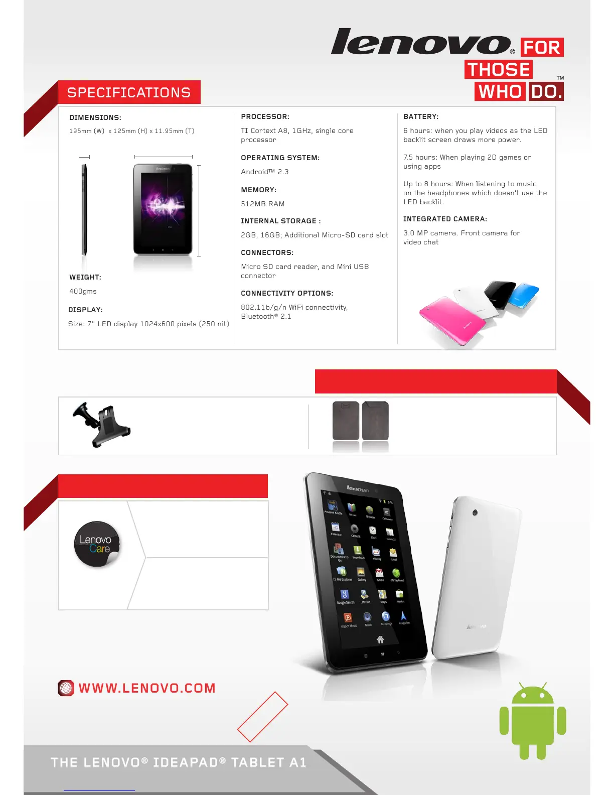 THE LENOVO® IDEAPAD® TABLET A1