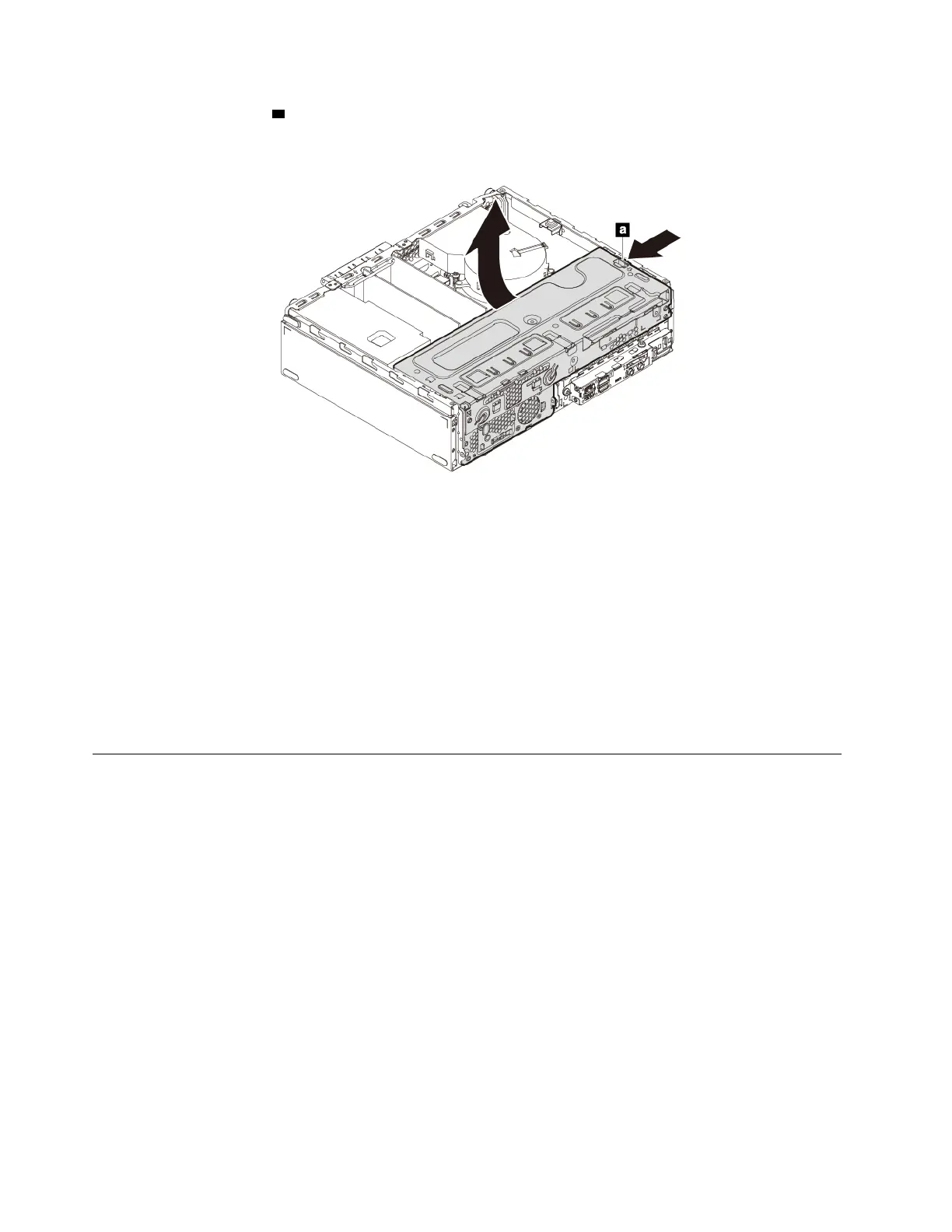6. Press the release tab a as shown and pivot the drive bay assembly upward to open the drive bay