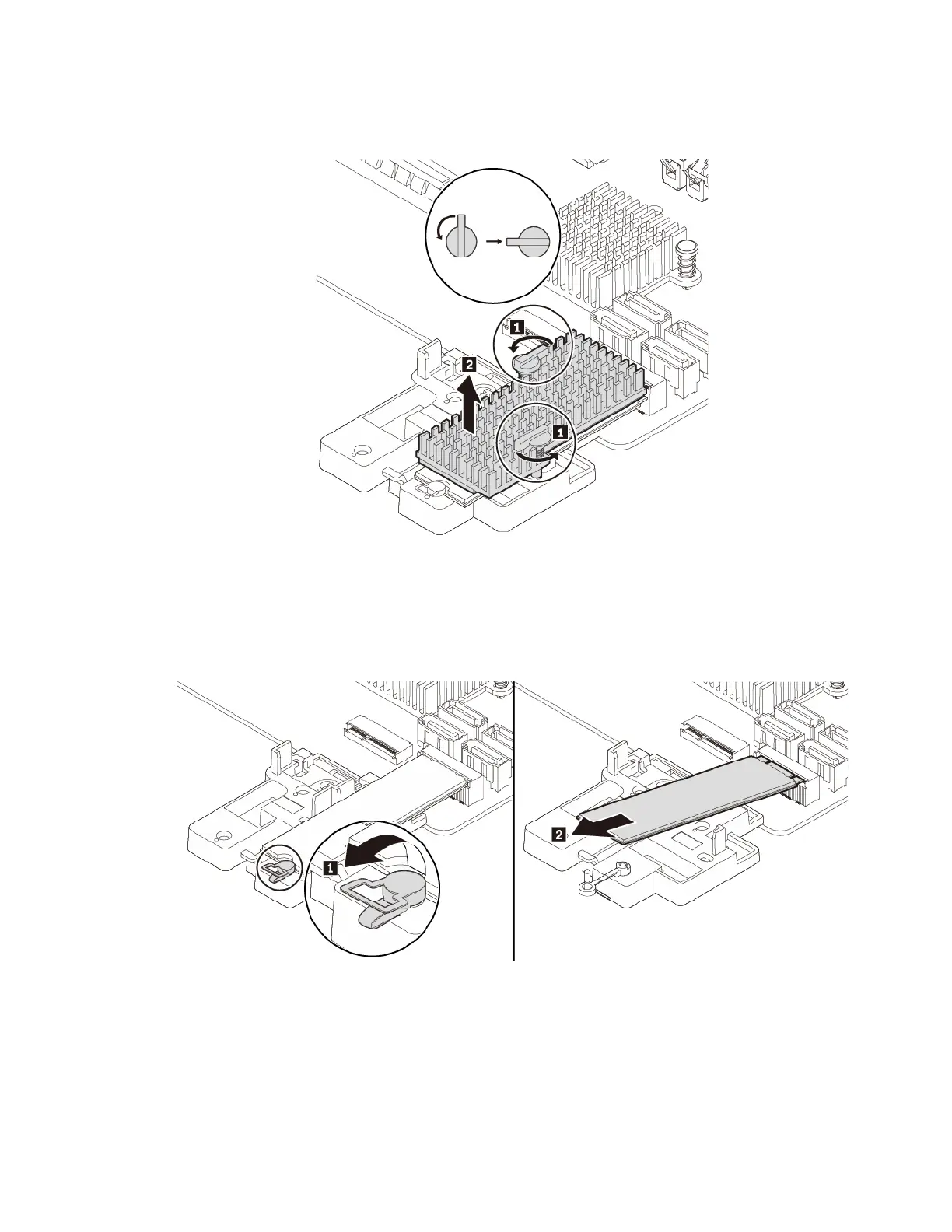 released from the secured position and pivots upward. Remove the M.2 solid-state drive out of the