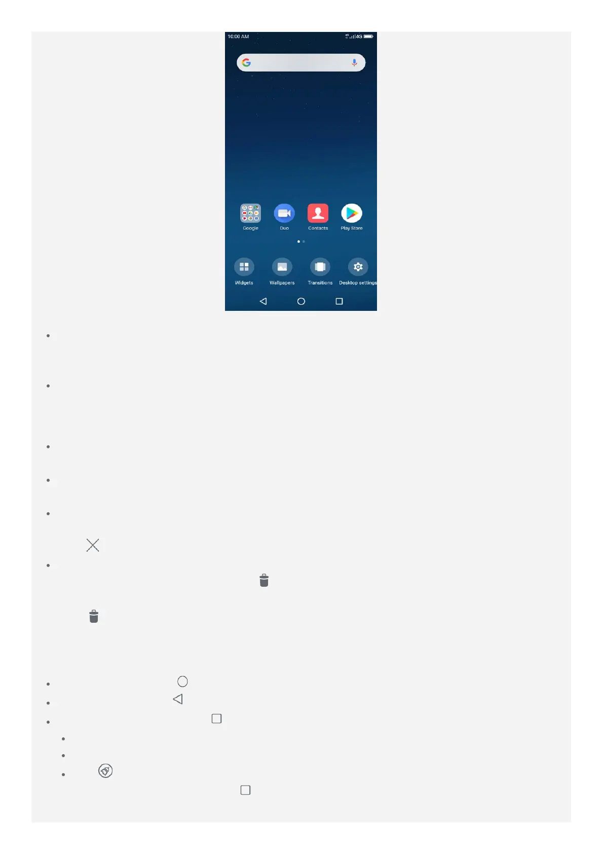 Home button: Tap to return to the default home screen.