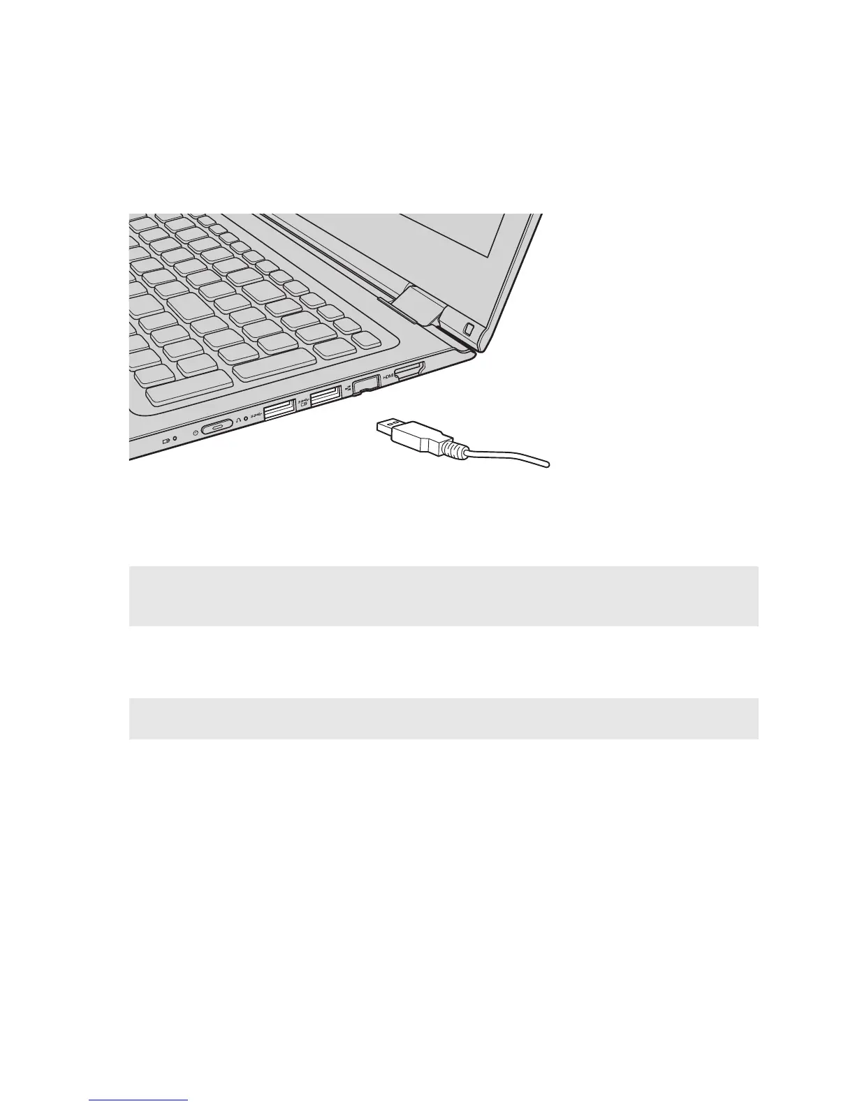 Note: If your USB device uses a power cord, connect the device to a power source before connecting it.