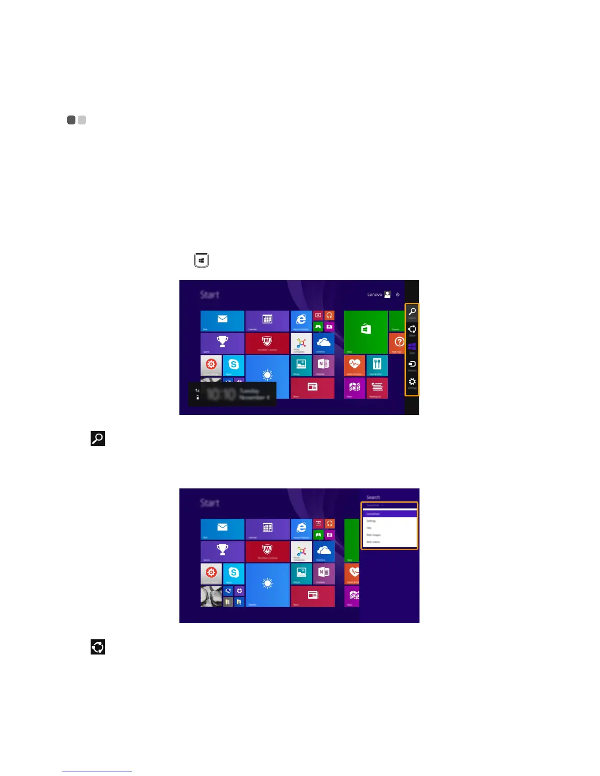 • Move the cursor to the upper-right or lower-right corner until the charms bar is displayed.