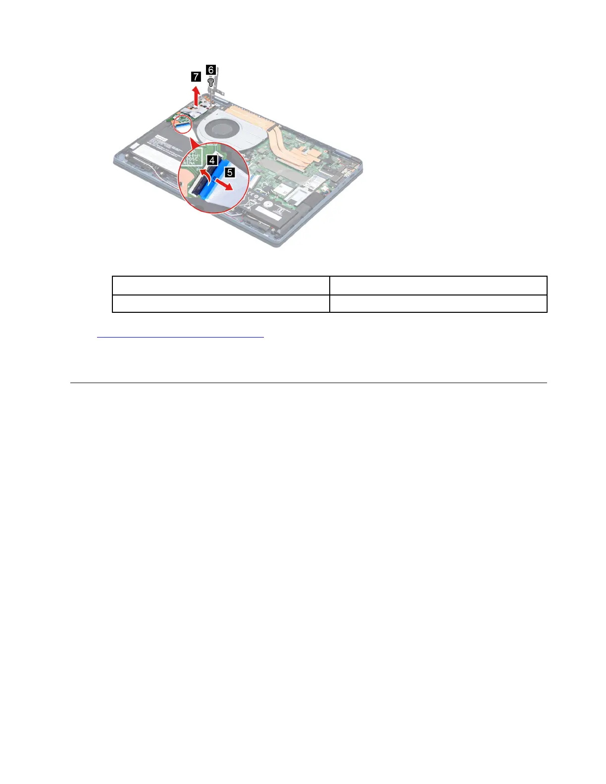 Step 1. Disconnect the I/O board cable from the I/O board and system board. Remove the I/O board cable.
