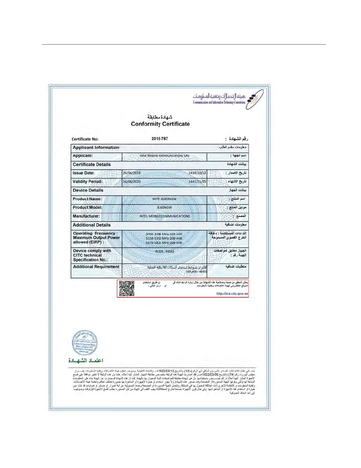 For model: 8260NGW