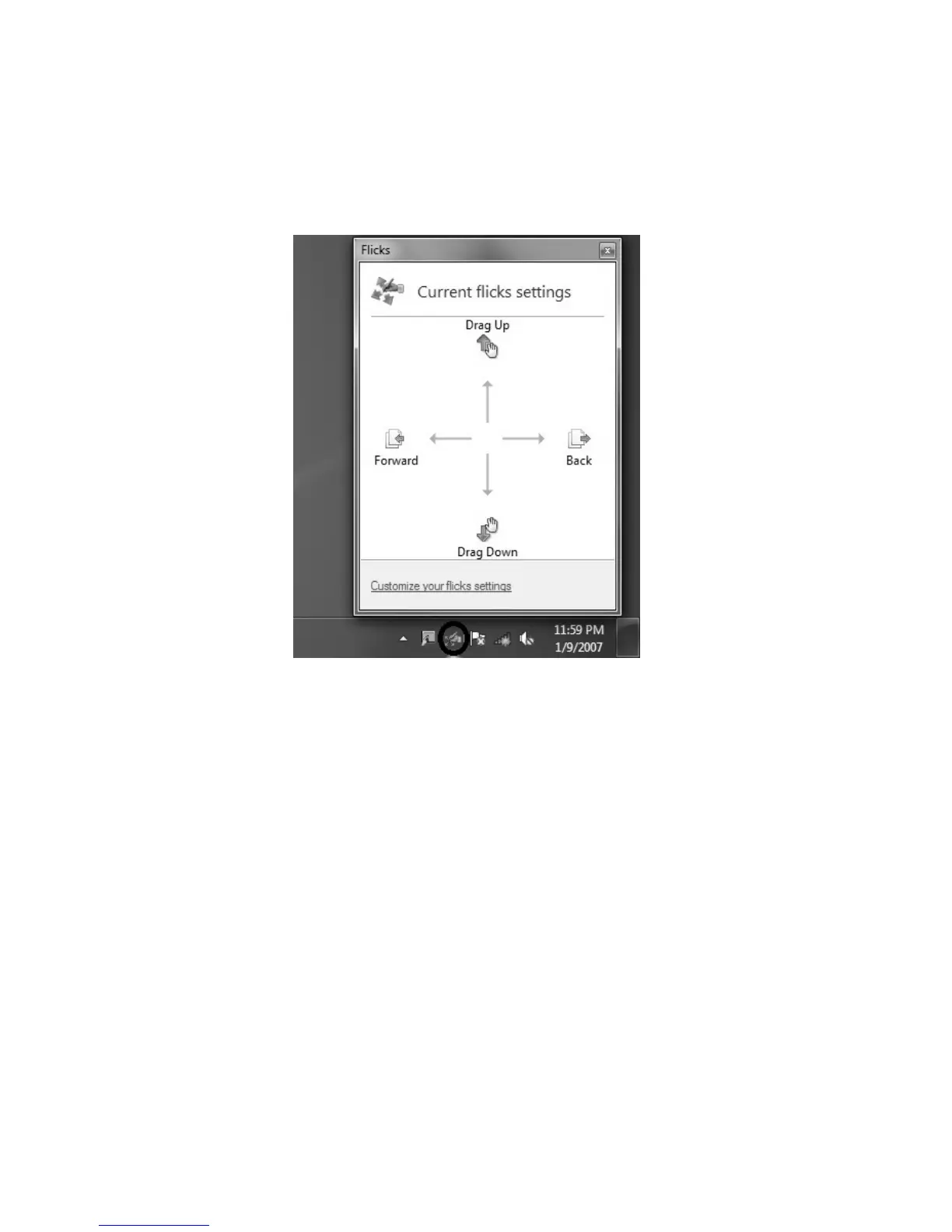 1. Flicks: In the notification area of the taskbar at the bottom of the screen, click on