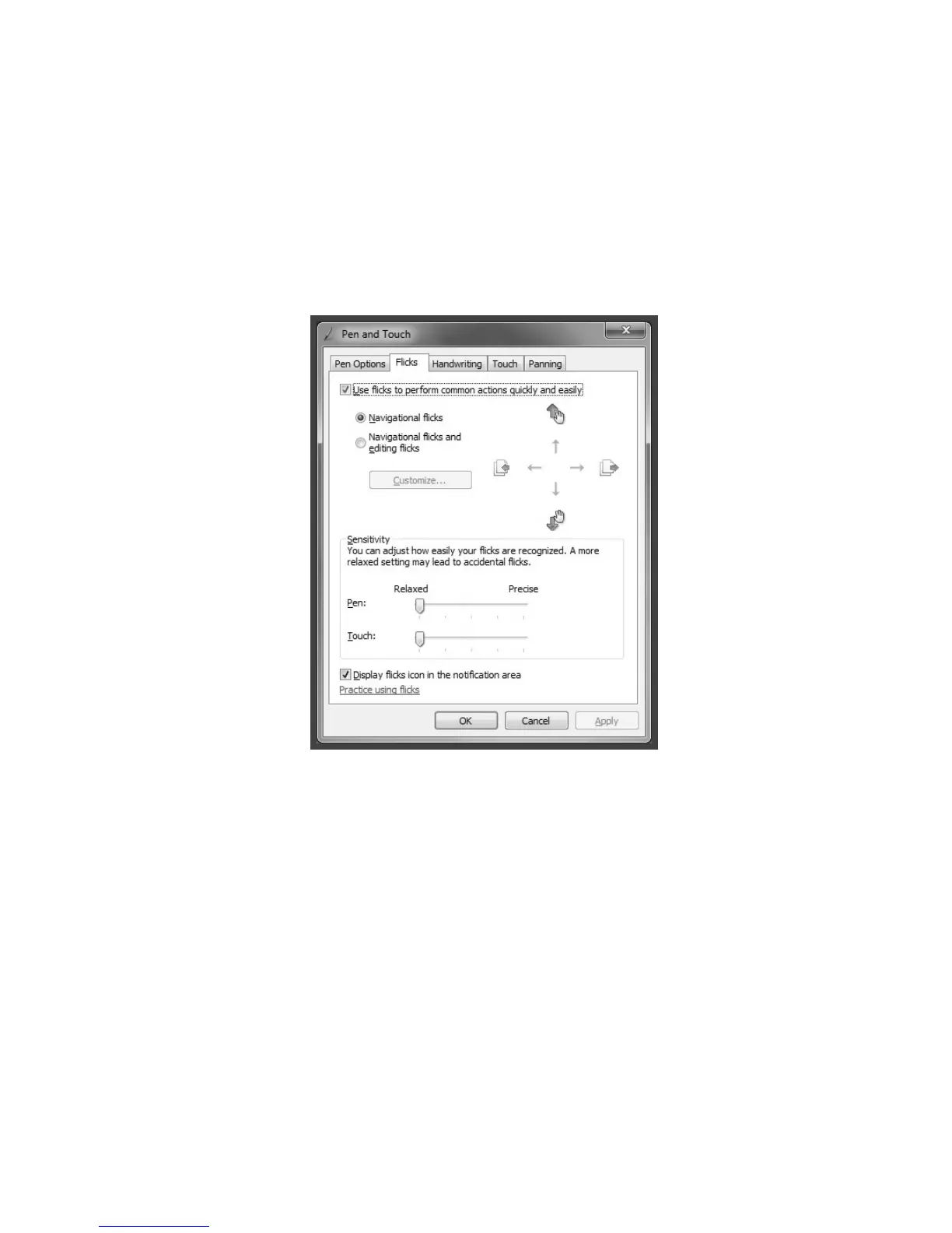 “Customize your flicks setting” in the Flicks pop-up window. In the “Pen and