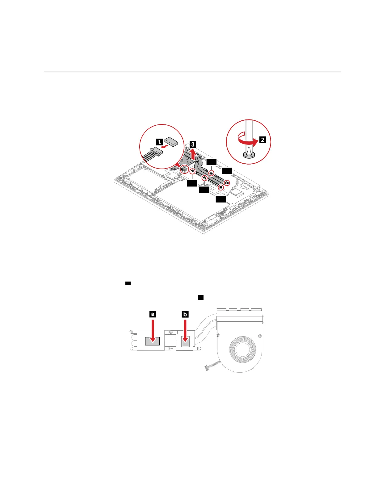 • Do not apply pressure on the top and bottom covers of the thermal fan assembly.