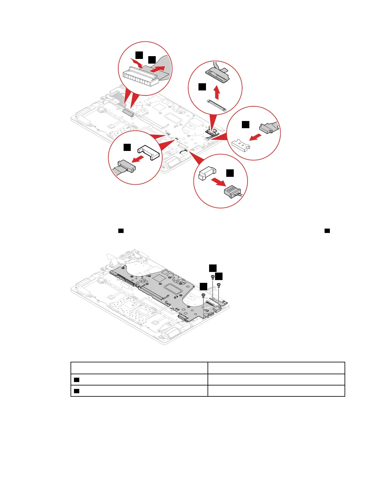 Step 2. Remove 1 screw 7 that secure the system board to upper case. Then, remove the 2 screws 8 that